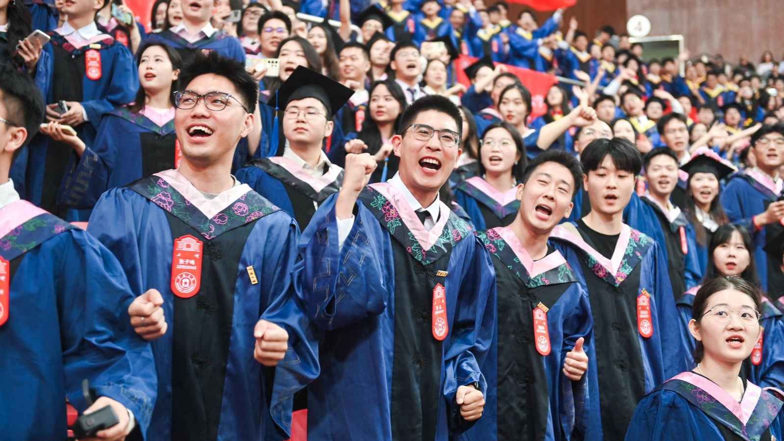 “东海之滨,红霞万里,春潮滚滚,巍巍学府,宏伟壮丽,屹立甬城……”典礼最后,激昂的校歌旋律回荡在整个场馆,既承载着毕业生对母校的深深眷恋,又寄托着他们奔赴锦绣前程的豪情壮志。